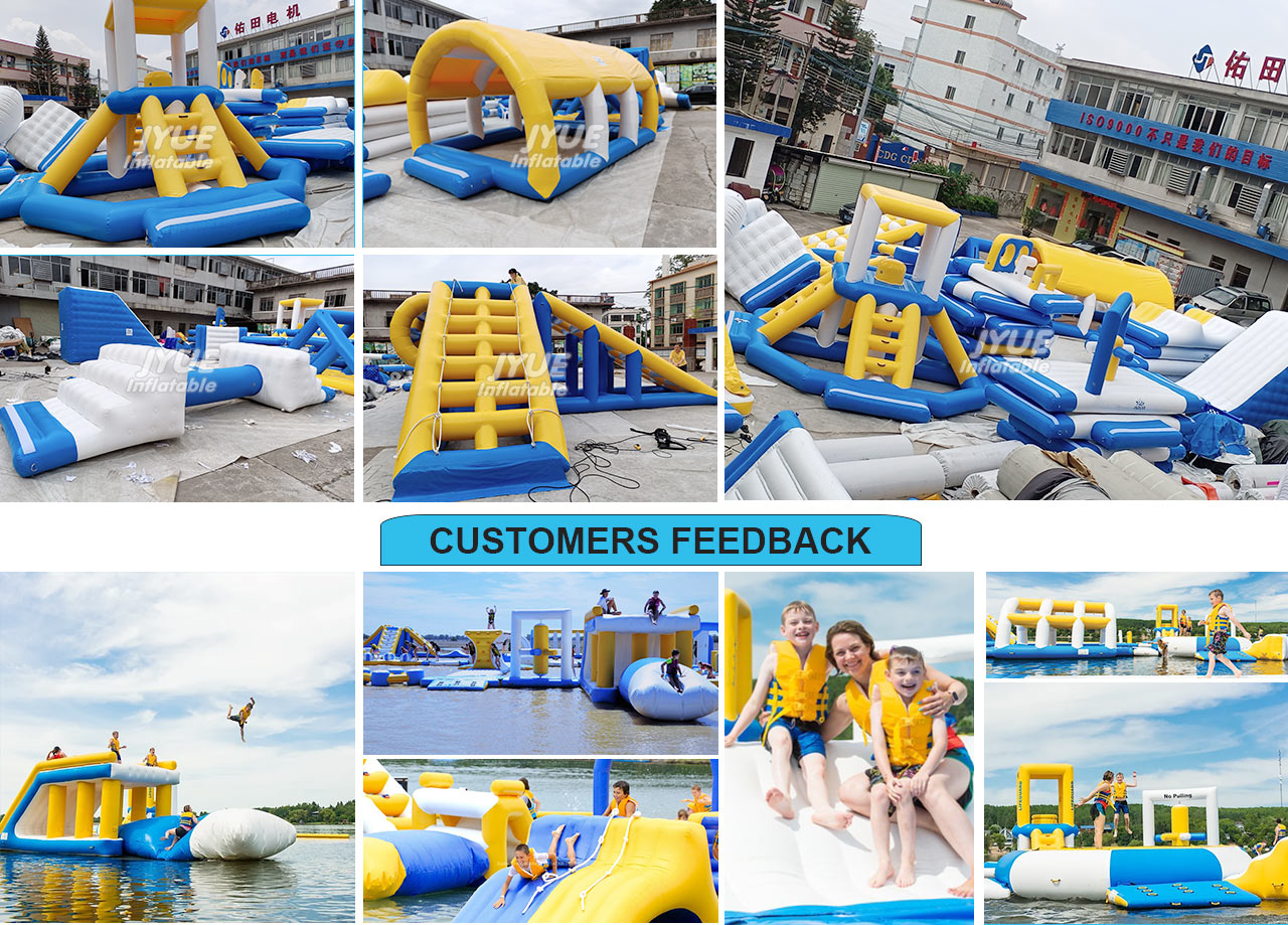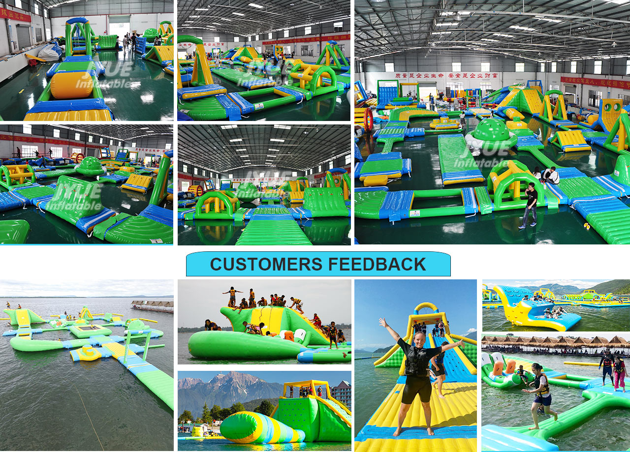 Inflatable Floating Water Park The inflatable waterpark is an amusement Aquapark that features water play areas, it is made up of such as inflatable slides, water slides, water trampoline, water totter, water action tower and other water games.