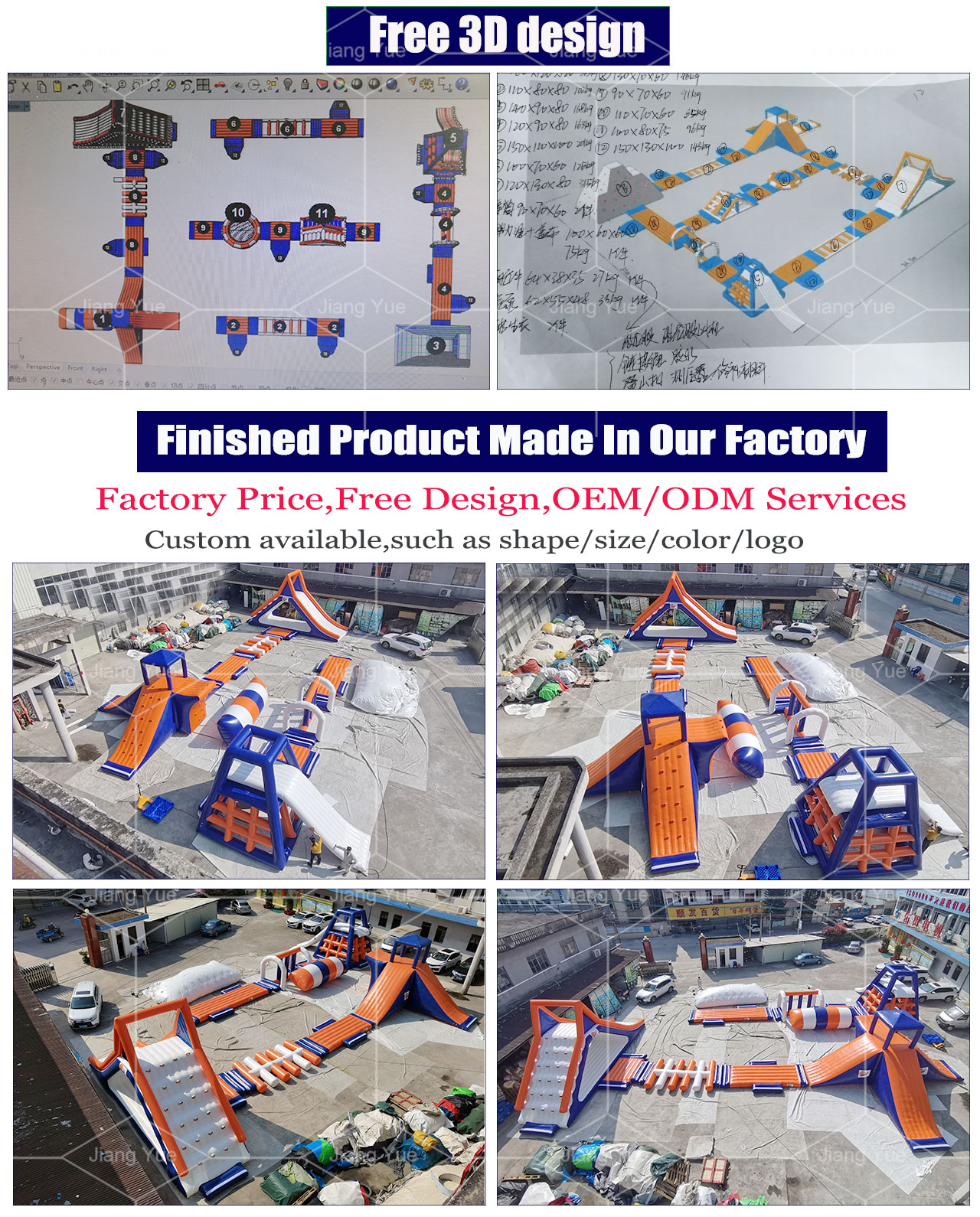The theme of the inflatable water park is tropical ocean, and the colors and shapes of the facilities are all related to ocean elements. For example, there are large inflatable whale shaped amusement facilities with small slides and play areas inside the whales.