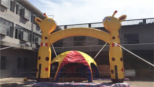 Inflatable arches are usually made using PVC. Uniquely our arch is made using polyester making them significantly lighter (and better for the environment). This makes them easier to transport and easier to set up than the PVC equivalent. At less than 28kg one person can easily manage the 5m wide arch. With a PVC arch at least two people would be required as the arch would weigh 50-70kg.inflatable arch pump