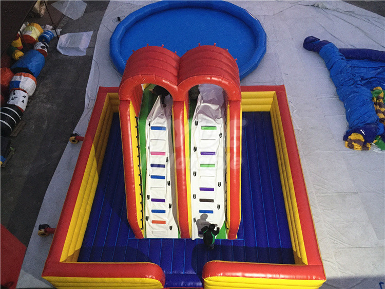 Our water slide pool can be used in commercial business like amusement park, outdoor entertainment for rental or other more water amusement area. The inflatable water park on land,which is mainly a combination by water pool and slide, there are also more popular with application together with water walking ball, water roller, paddle boat, water toys etc. The combination of water pool with water toys now are very popular, which will bring much fun and happiness for kids and adults during the hot summer.
