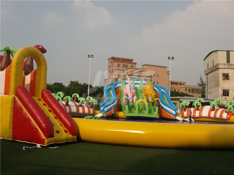 Outdoor Inflatable Water Park With Slide Giant Dinosaurs Amazing Water Park