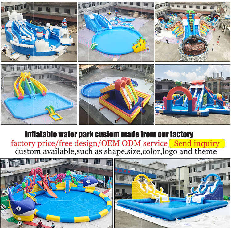 This commercial adult inflatable water park we made is for commercial use or home use, and it can be widely placed in outdoor occasions like parks, gardens or backyards, schools or some other playing centers, etc; People will enjoy themselves in this wonderful paradise. Inflatable slides are those slides that can be used in both wet and dry situation. There are many different sizes,themes and colors. Some of them will have a water pool attached to cool summer heat off.