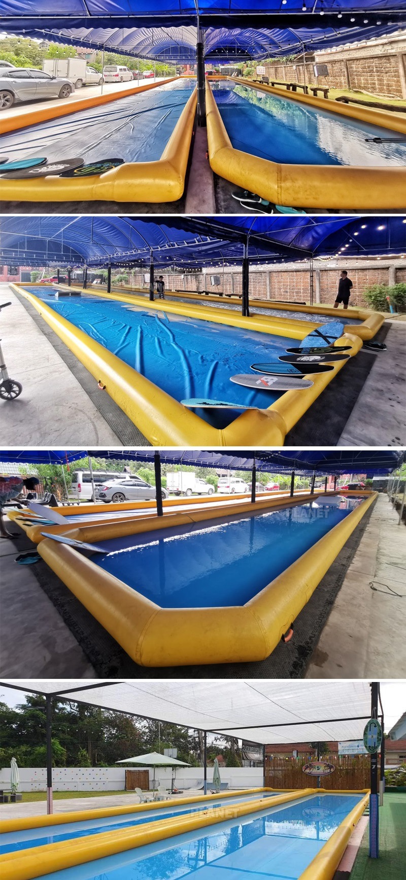 inflatable Skimboard Pool is waterproof and movable for skimboarding promote skimboarding in order to develop its practice and make the general public aware of this very fun boarding sport. These inflatable structures are totally safe and offer the guarantee of a sporting event where water sports are in the spotlight. Inflatable skimboarding pools can be positioned on a variety of surfaces, both indoors and outdoors. Teams can set up the pool quickly. In urban areas (esplanade, parking lot, road) as well as in rural areas (grass field, stadium) or on a beach.