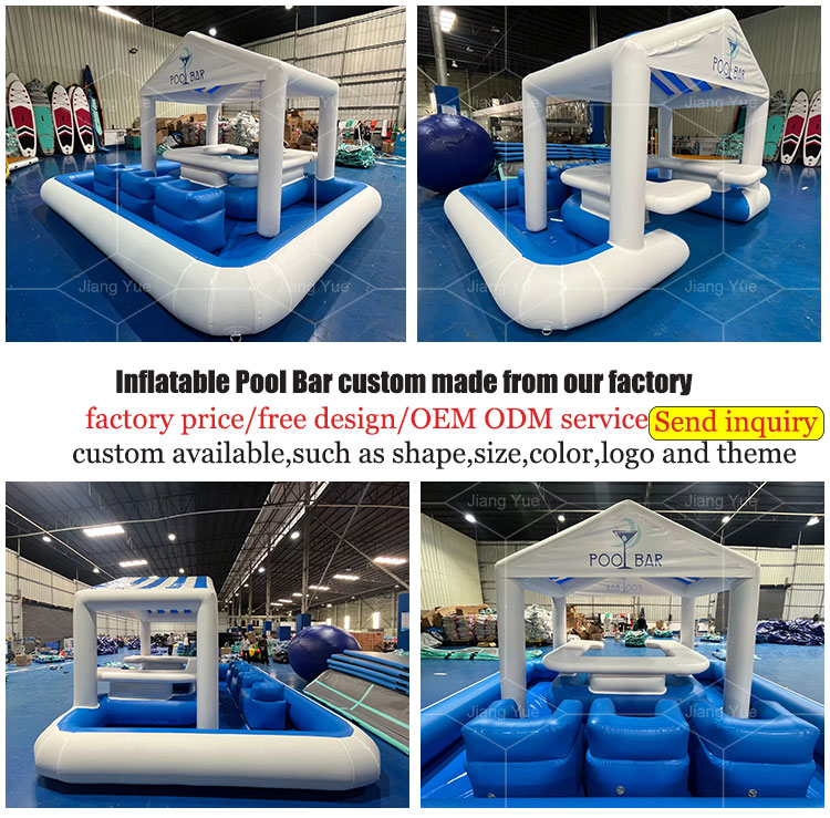 The product is also suitable for indoor events, such as corporate parties, product launches, and trade shows. You can create a unique and eye-catching display by setting up an inflatable pool bar at your event. The drop stitch pool can be customized with your branding and logo, making it an excellent marketing tool.