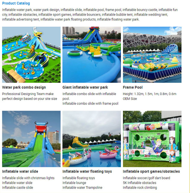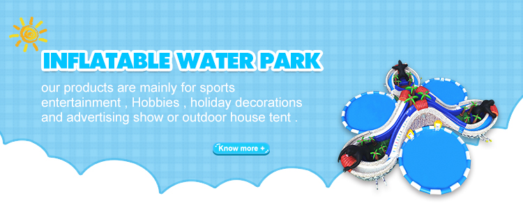 On land water park is what we usually call water park as well. It is a combination of giant water pool and giant water slide by which you can have fun of water and MORE anywhere. Inflatable water park usually occupies large place from hundreds to thousand but very easy to set up, you can benefit a lot from even only one park!