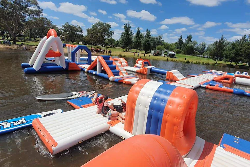 Our newest beach splash is a 15,750-square-foot Floating Water Park with inflatable slides, floating trampolines, ocean loungers and island rafts.Any size can be customized.
