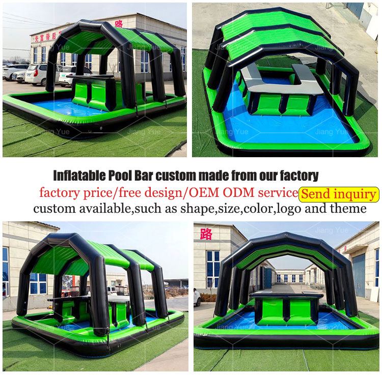 Inflatable Pool Bar: Portable, durable inflatable bar with pool, is good choice for beaches, backyard parties.Custom Sizes/Colors , easy to inflate, waterproof. Perfect for summer gatherings & rentals.