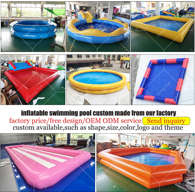 The Small Inflatable Pool With Pump is Made by Plato Commercial Grade 0.6 or 0.9mm PVC Tarpaulin. It's the kind of Air-tight Production are welded by a hot-air machine. It's widely used at Beach, Water Park, Aquapark, Market Center, Shopping Mall, etc.