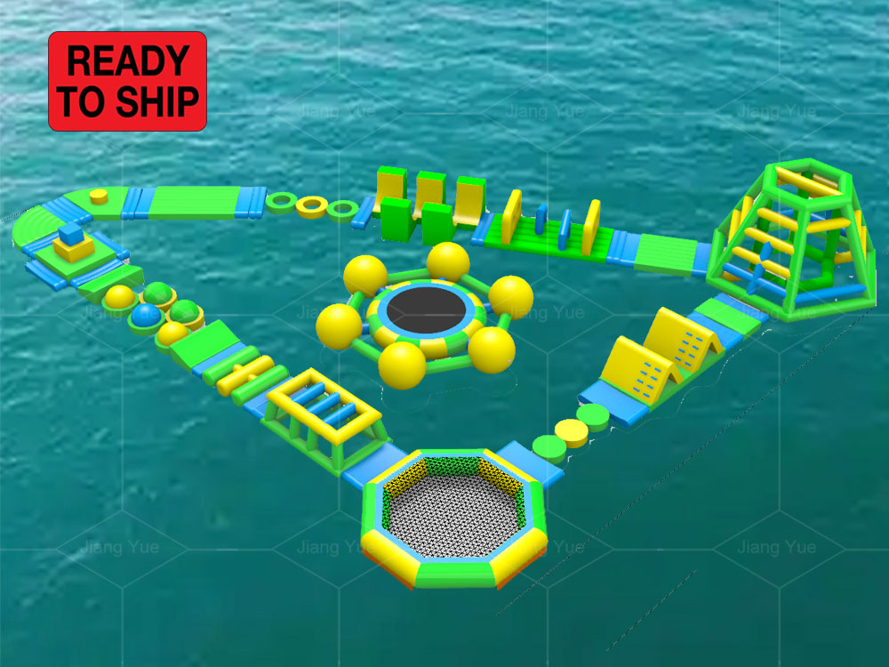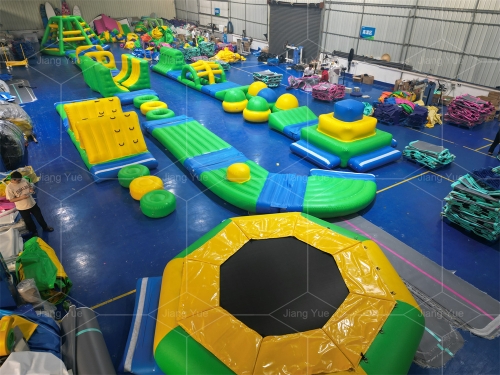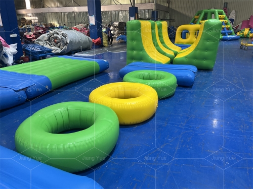 the inflatable aqua park obstacle for lake s lirked together by seres ofinfatable slides. unning tacks umping pllows and ourcers foting in a clean refeshing lik or sea has swings, rmps,jumps laders, tampolines slides swing oridges and more Comes in a wide vriey of shapes sizes and functions to make activites exciting and entertainingor everyone